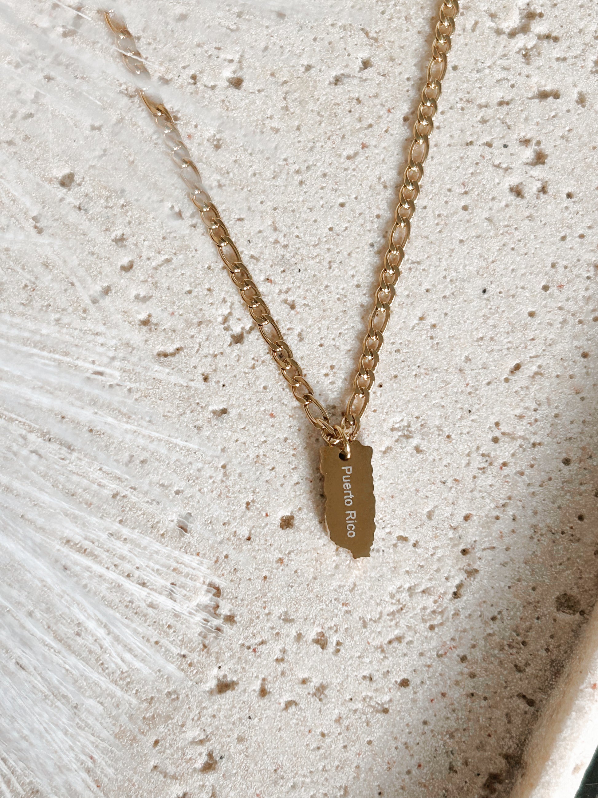Un diseño delicado con cadena dorad y la silueta de Puerto Rico. Perfecto para lucir tu orgullo boricua todos los días.