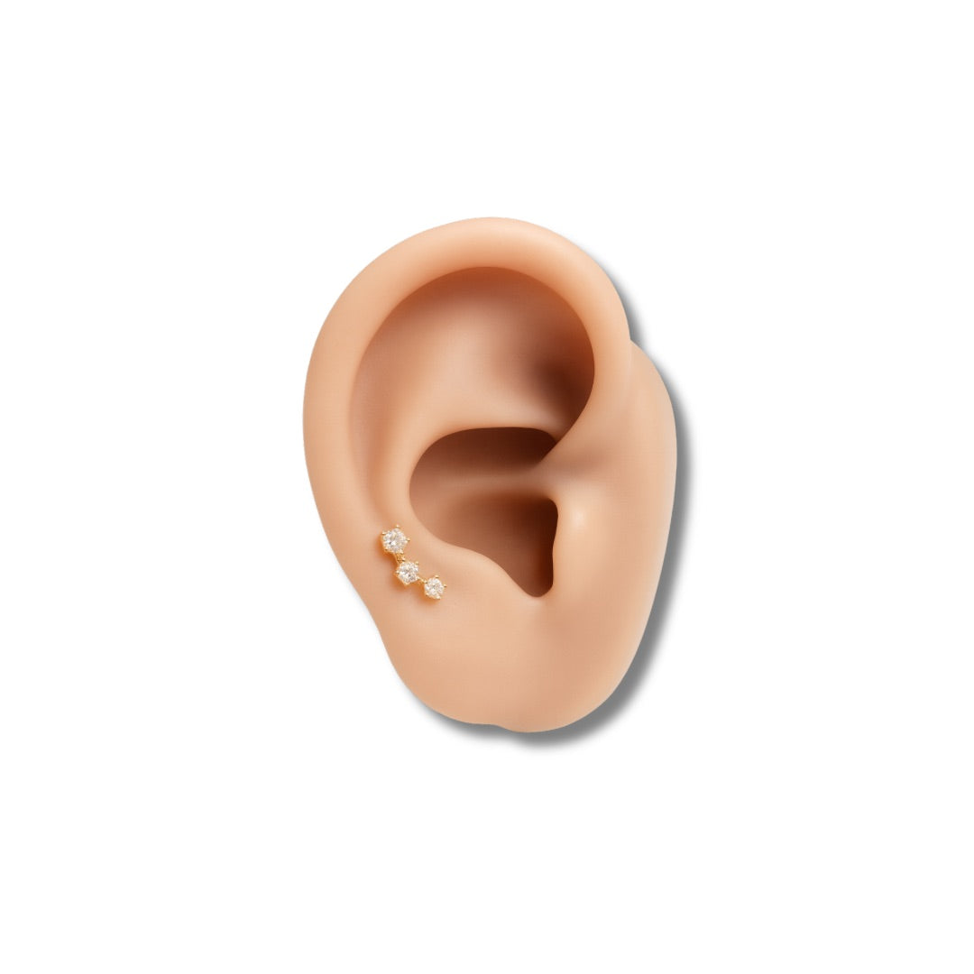 Shine like the stars ✨ A delicate trio of round crystals on stainless steel with gold finish. Hypoallergenic, timeless, and perfect for everyday wear.
